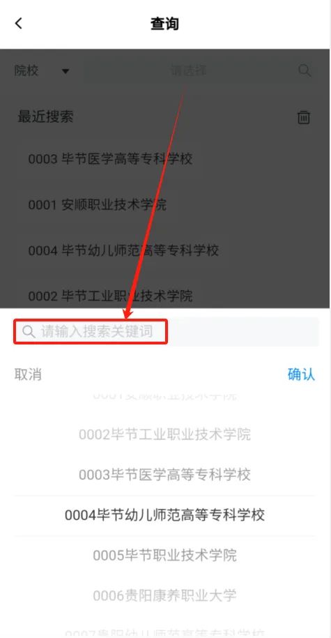 考生进入计划查询界面后,点击页面上方【搜索】框,进入院校/专业筛选查询页面。